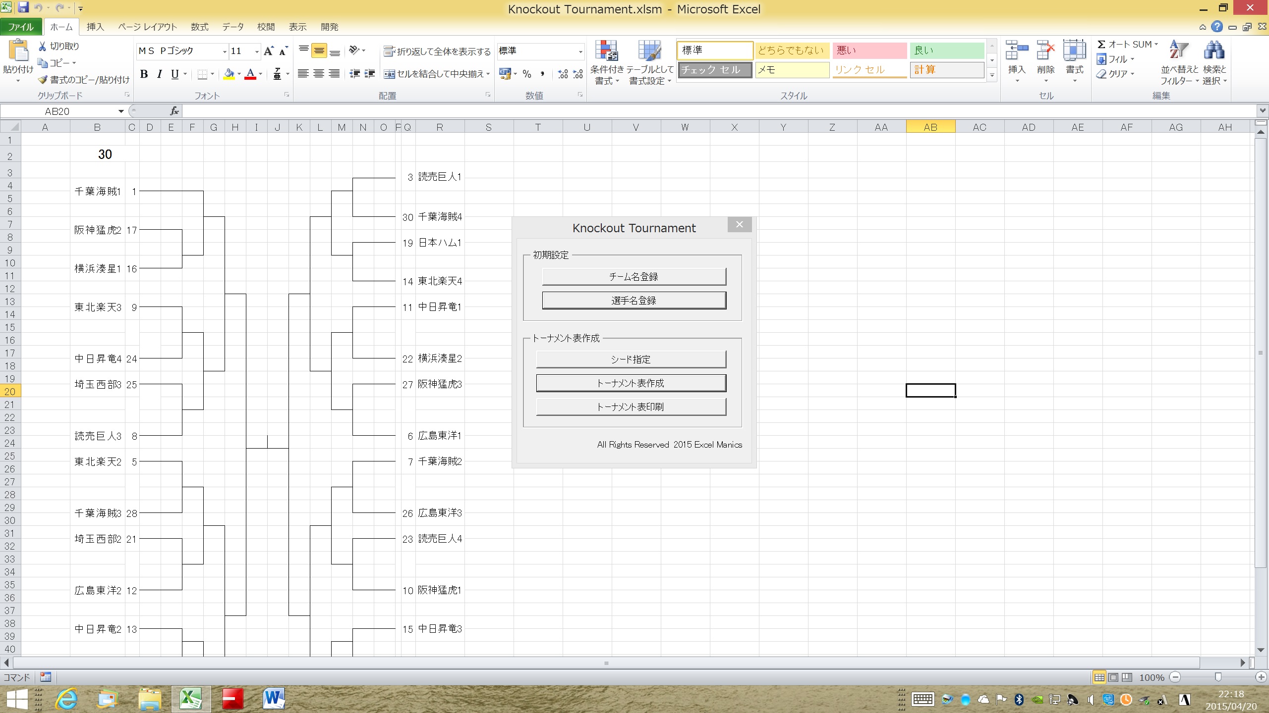 6. マクロ「初期設定終了」を実行して、念のため上書き保存。